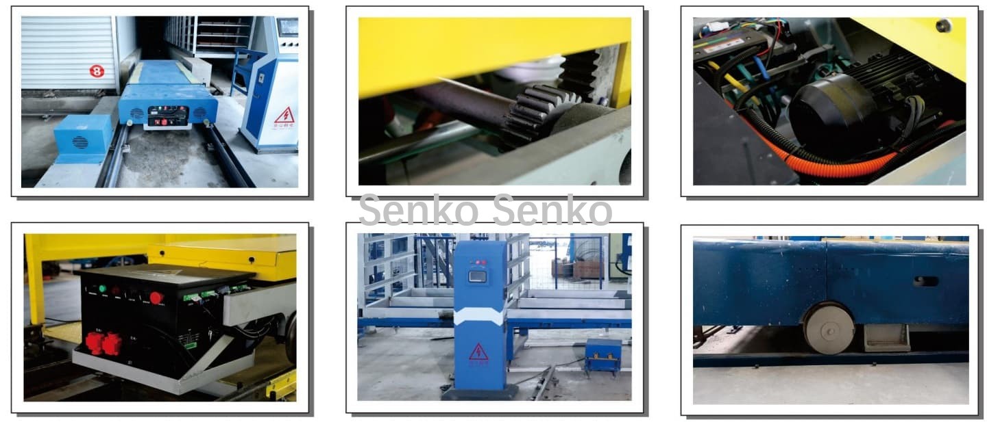 Kendaraan pengangkut RGV (Rail Guided Vehicle) memainkan peran krusial sebagai pusat logistik otomatis yang efisien di pabrik-pabrik produksi batako. Melalui jaringan rel tetap atau fleksibel yang telah ditentukan sebelumnya, kendaraan ini menghubungkan berbagai tahap produksi secara presisi, seperti mesin cetak bata, tanur pengeringan, dan area penumpukan, sehingga memungkinkan pemindahan batako secara otomatis sepenuhnya. Batako berat, dan lingkungan produksinya berdebu serta bergetar. RGV dibangun dengan kokoh dan dirancang untuk beban berat dan kondisi ekstrem, memungkinkan operasi yang stabil, berjangka panjang, dan tanpa gangguan.Dengan mengandalkan lintasan tetap, RGV dapat mencapai akurasi penghentian yang sangat tinggi, yang penting untuk integrasi otomatis dengan pabrik pembuat batu bata, penumpuk, dan peralatan lainnya, guna memastikan siklus produksi yang konsisten.