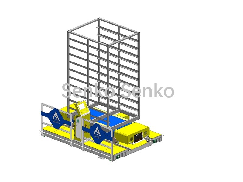 Mekanisme pengangkat pada troli pengangkut mengangkat barang, dan troli bergerak ke posisi yang ditentukan sesuai target yang telah ditentukan. Troli kemudian menurunkan barang untuk meletakkannya, sehingga memindahkan barang dari satu lokasi ke lokasi lain, atau disebut transfer barang.
