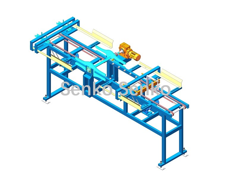 Setelah bata dipisahkan, palet kosong diangkut dengan rantai. Mekanisme pembalik dapat dikonfigurasi pada konveyor rantai untuk membalik palet kosong, lalu palet kosong didorong ke dalam mesin palet.